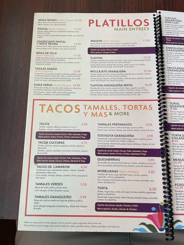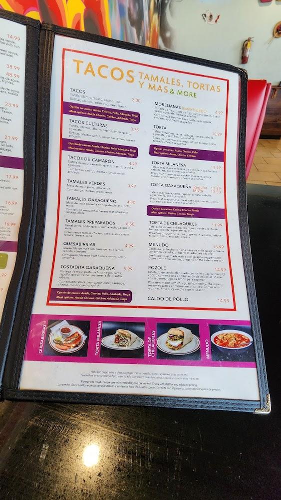 The menu at Culturas Hidalgo & Oaxaca delights with a variety of Mexican specialties. Signature items include mole, tlayuda, and quesabirria. Many enjoy the rich flavors and hearty portions that fill the plate.